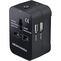 NEWVANGA International Universal All in One Worldwide Travel Adapter Wall Charger AC Power Plug Adapter with Dual USB Charging Ports for USA EU UK AUS European Cell Phone Laptop